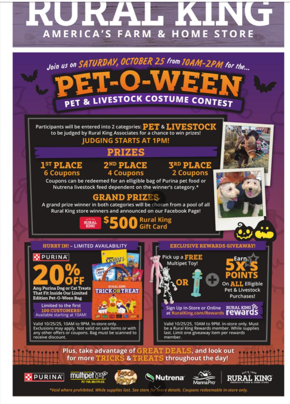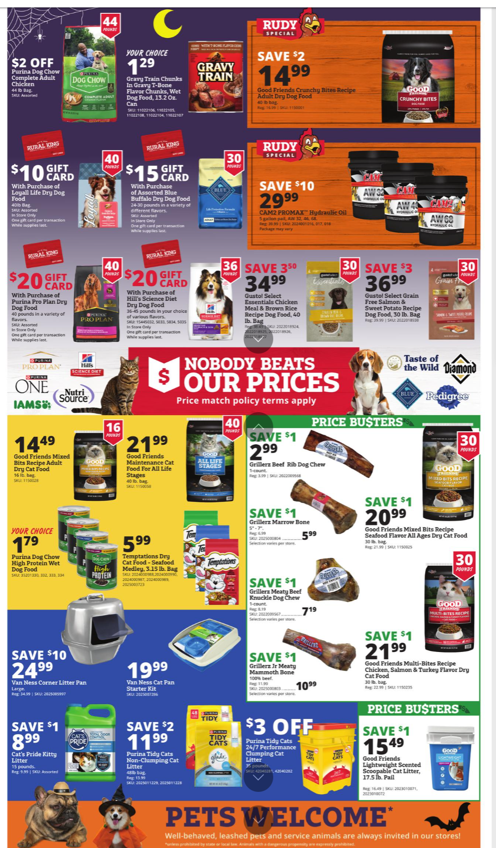 Searching for great deals on pet food and supplies? Check out the Rural King Weekly Ad for top-quality brands for dogs, cats, and farm animals—all at affordable prices.